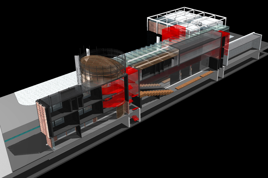 Sezione assonometrica di edificio polifunzionale